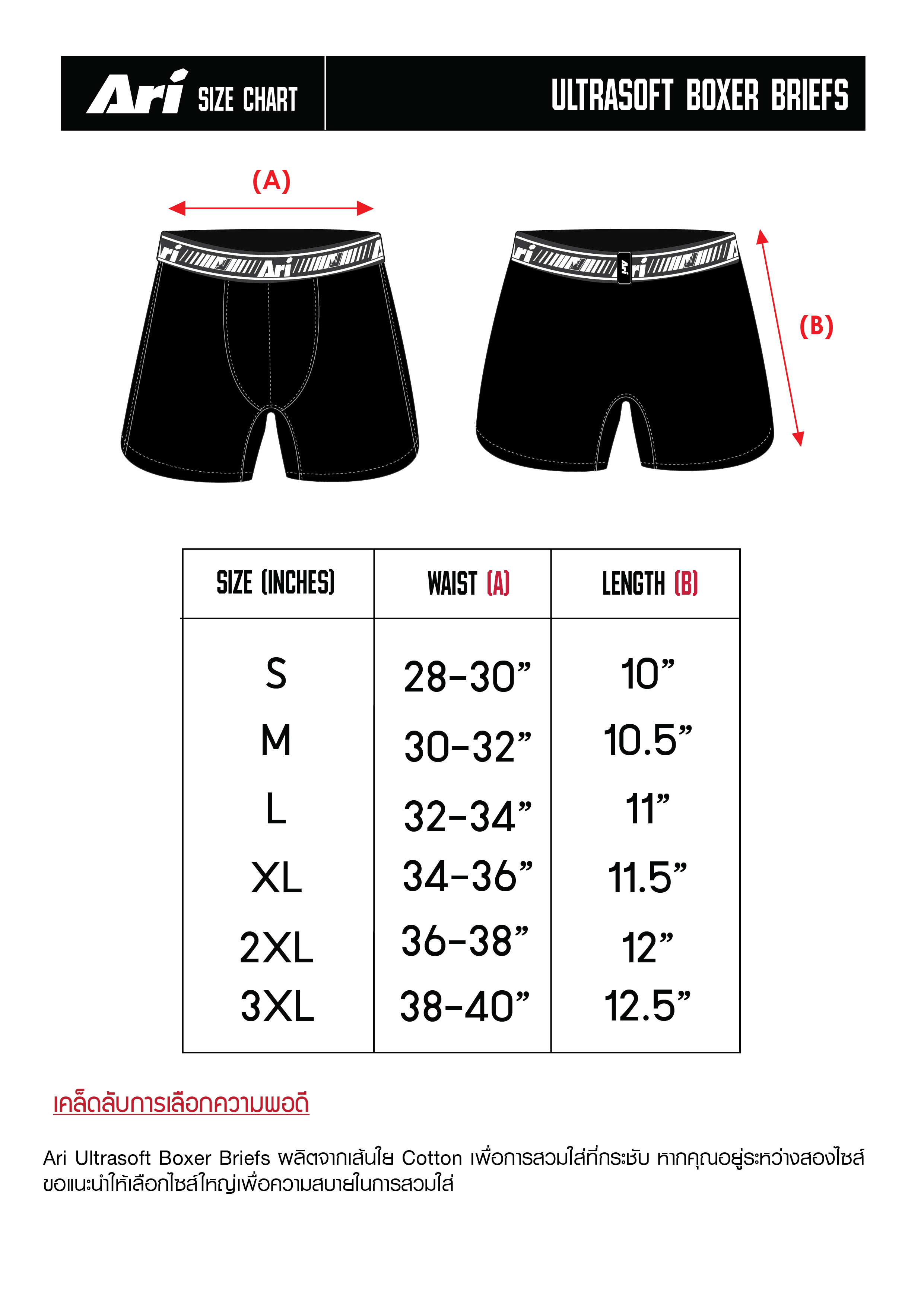 กางเกงชั้นในชาย ใส่สบาย ระบายอากาศได้ดีด้วยเนื้อผ้า Cotton , Polyester และ Spandex ยืดหยุ่น คล่องตัว ใส่ได้ทุกโอกาสในชีวิตประจำวัน
