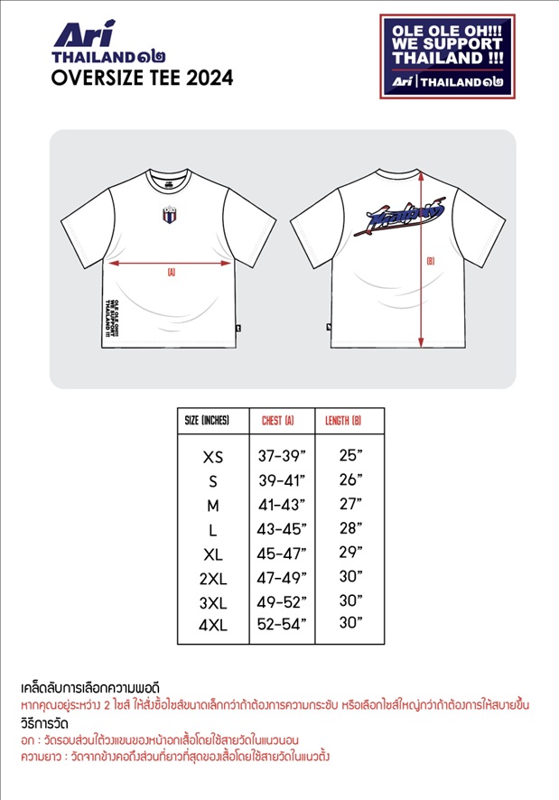 ARI THAILAND 12 OLE OLE OH OVERSIZED TEE - WHITE/BLUE/RED